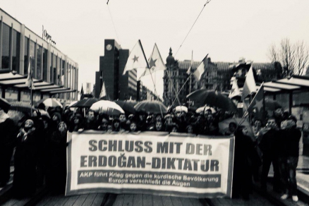 Unterwandert mit uns dass Verbot kurdischer Fahnen und Symbole. Blockieren wir die Lieferung von Waffen in die Türkei.Es lebe die Commune von Rojava!