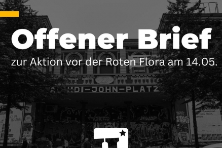 Während Gaza Tag für Tag vom israelischen Militär bombardiert wird und Menschen sterben, während noch immer Geiseln in den Händen der Hamas sind, während die deutsche Rüstungsindustrie auf Hochtouren fährt, während Antisemitismus und antimuslimischer Rassismus gleichermaßen zunehmen, protestieren Teile der pro-palästinensischen Bewegung ausgerechnet gegen die Rote Flora. Das finden wir nicht nur unsinnig, es macht uns auch wütend und traurig. Mit entsprechendem Unverständnis betrachten wir die Kundgebung vom 17.7.2024 vor der Flora und die drohenden Reden, die dort gehalten wurden. Die Rote Flora kann sich auf unsere Solidarität gegen solche Angriffe verlassen.