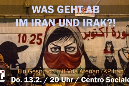Seit Herbst gehen im Irak Tausende, vor allem junge Menschen auf die Straßen, um gegen die korrupte Regierung zu protestieren. Über 600 von ihnen wurden bereits getötet, von "Sicherheitskräften" bzw. mutmaßlich vom Iran kontrollierten Milizen. Auch dort, im Iran, gingen Ende 2019 Tausende gegen die Herrschaft der Mullahs auf die Straßen - das Regime reagierte mit einem Blutbad. Nachdem die USA den iranischen Chefstrategen Soleimani Anfang Januar gezielt getötet hatten, stand kurzzeitig die Gefahr eines erneuten Krieges im Raum. Was bedeuten die geopolitischen Spielchen der imperialistischen Mächte für die Bevölkerung in der Region? Was charakterisiert die Protestbewegungen, welche Perspektiven haben sie und wie können wir sie unterstützen? Darüber wollen wir uns mit einem Genossen der Kommunistischen Partei des Irans unterhalten.